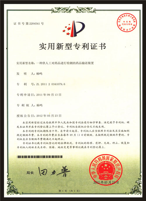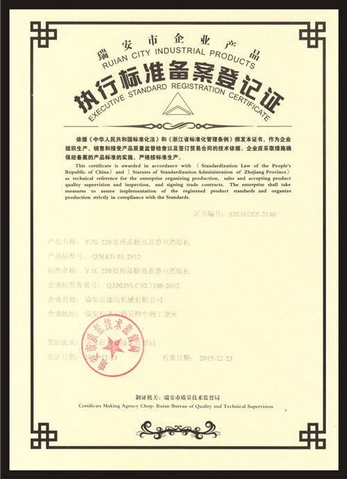 YJX-220型藥品檢查(靜電消除)機獲瑞安市科學技術進步獎